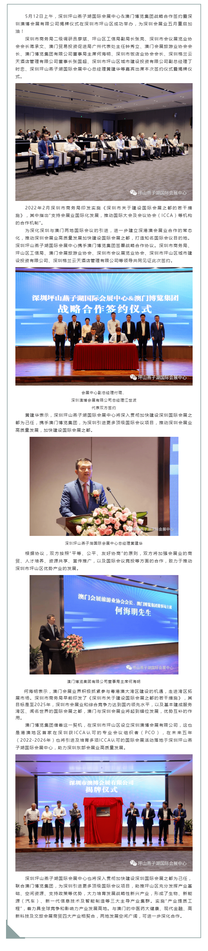 深圳坪山燕子湖国际会展中心与澳门博览集团全面深化合作